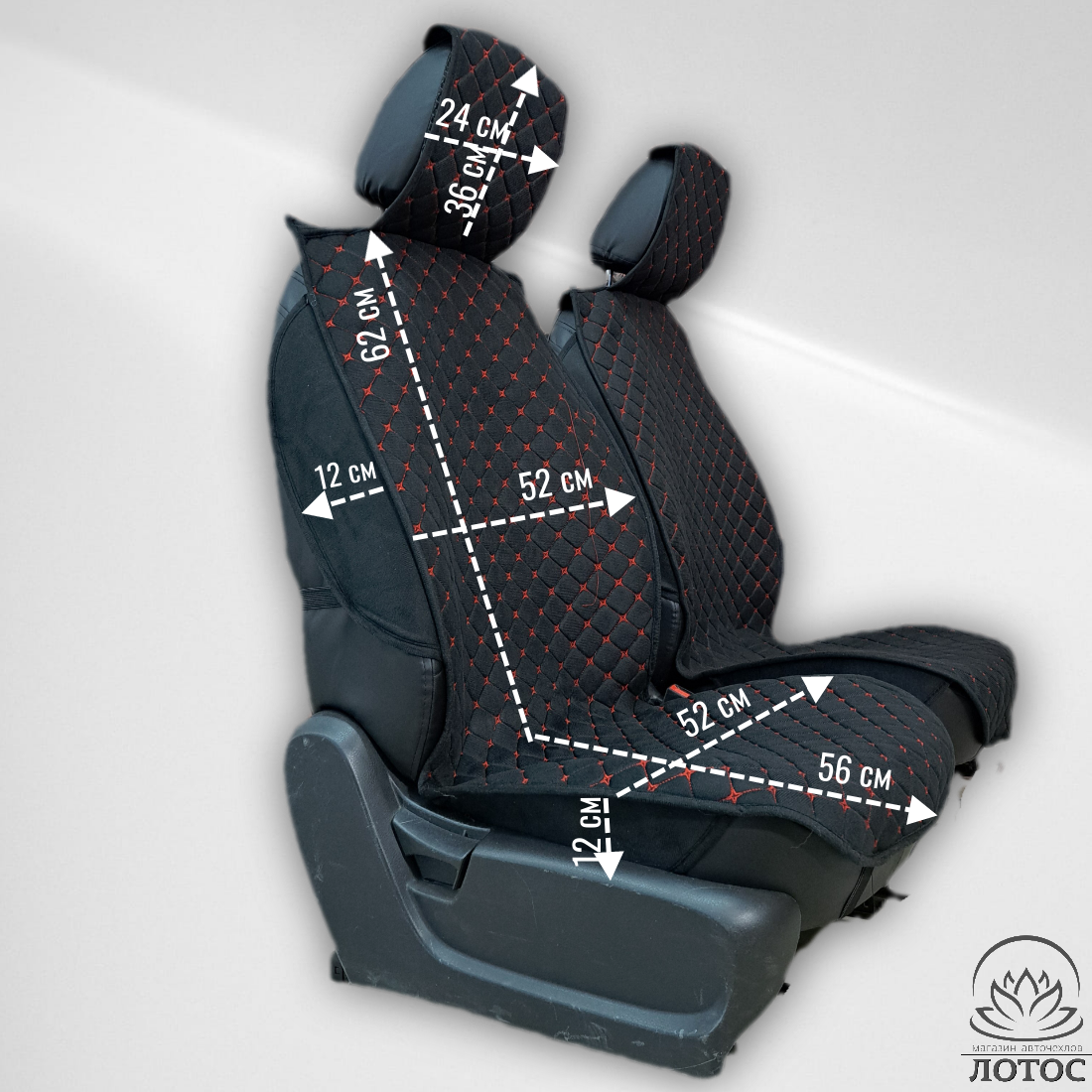Дизайн накидок - классический ромб, идеально впишется в любой салон. Они легко монтируются на сиденья и так же просто снимаются, поэтому вы сможете быстро установить их на сиденья вашего автомобиля.