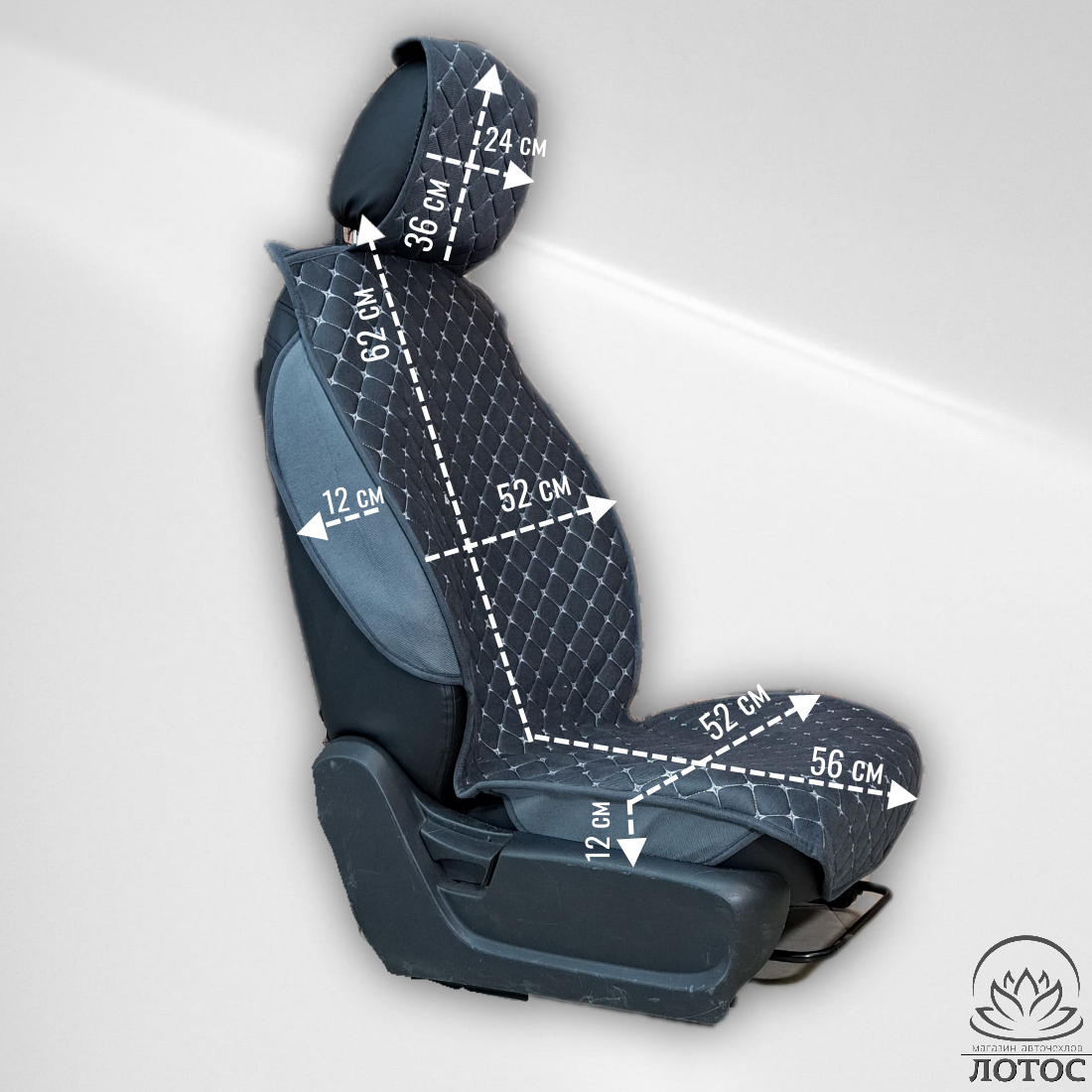 Дизайн накидок - классический ромб, идеально впишется в любой салон. Они легко монтируются на сиденья и так же просто снимаются, поэтому вы сможете быстро установить их на сиденья вашего автомобиля.