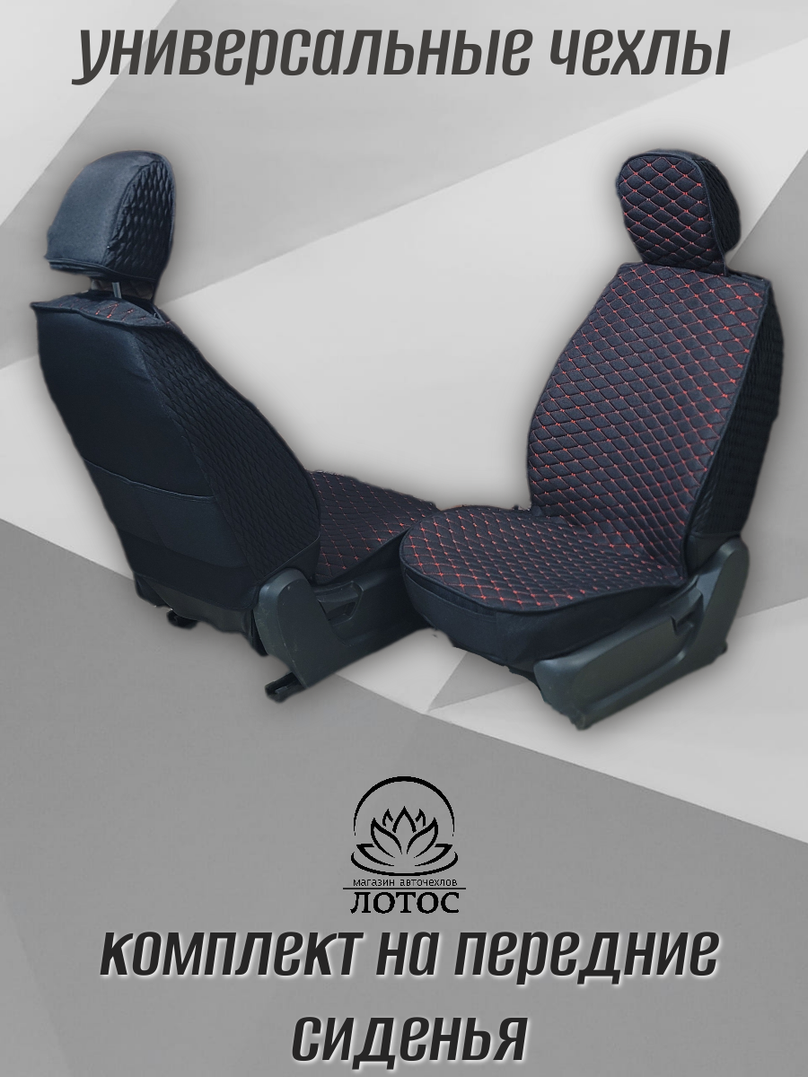 Универсальный чехол на передние сиденья из льна в черном цвете с красной нитью