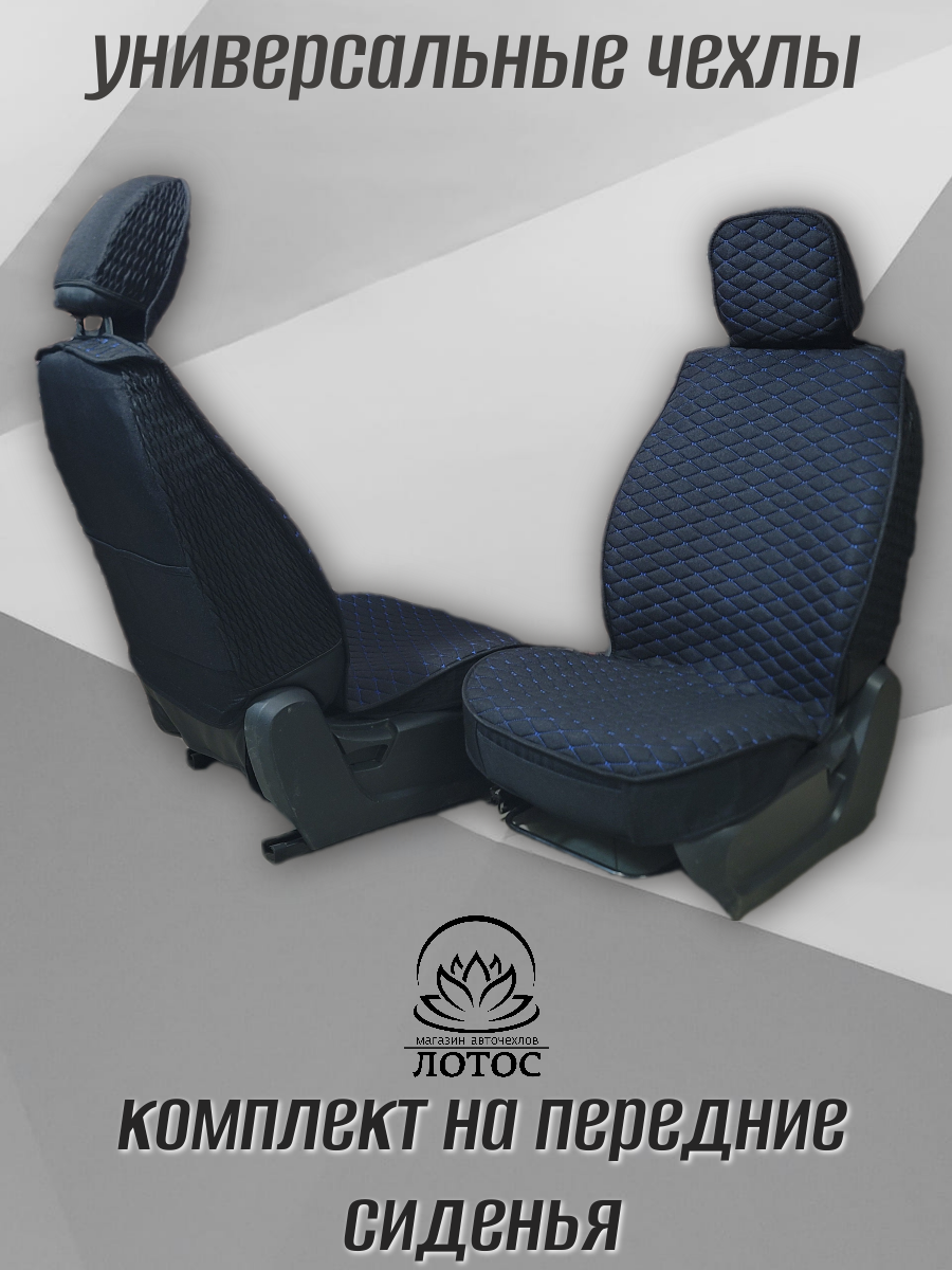 Универсальный чехол на передние сиденья из льна в черном цвете с синей нитью