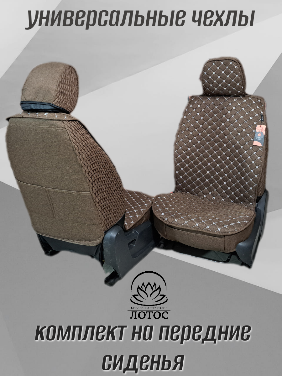 Универсальный чехол на передние сиденья из льна в коричневом цвете