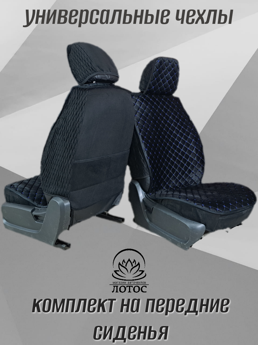 Универсальный чехол на передние сиденья из велюра в черном цвете с синей нитью