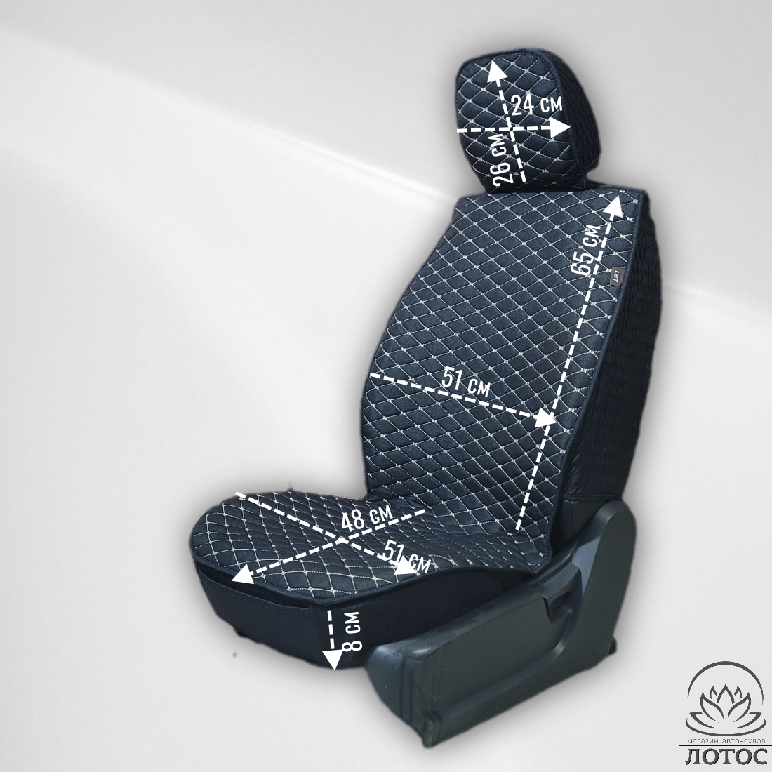 Комплект накидок на сиденье имеют полностью закрытые бока, заднюю спинку и подголовник. Дизайн накидок - классический ромб, идеально впишется в любой салон. Так же чехлы оснащены специальными карманами, где удобно хранить различные мелочи и аксессуары. Они легко монтируются на сиденья и так же просто снимаются, поэтому вы сможете быстро установить их на сиденья вашего автомобиля.