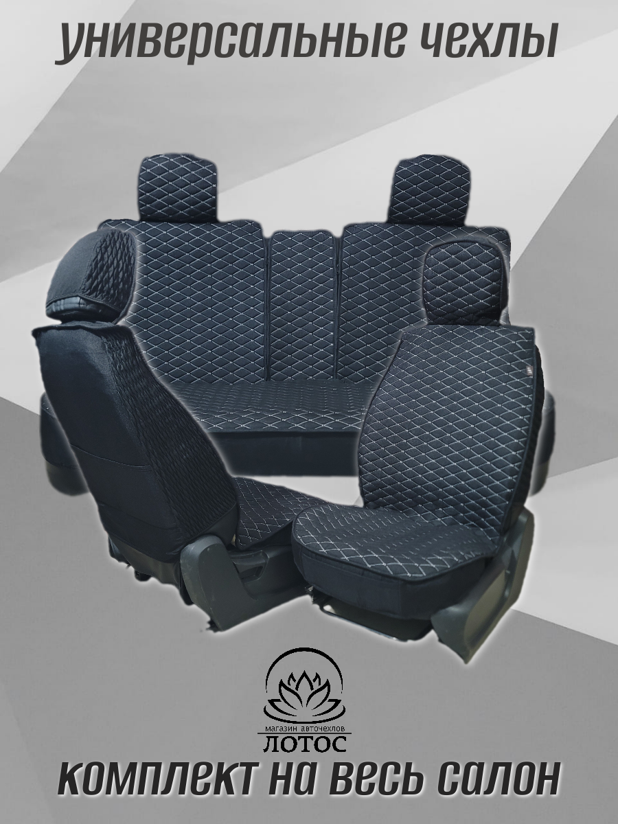 Универсальный чехол на весь салон из льна в черном цвете с белой нитью