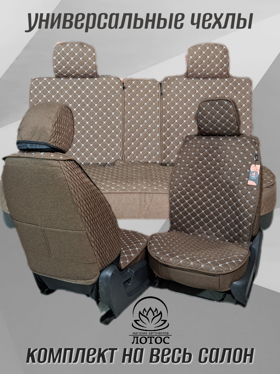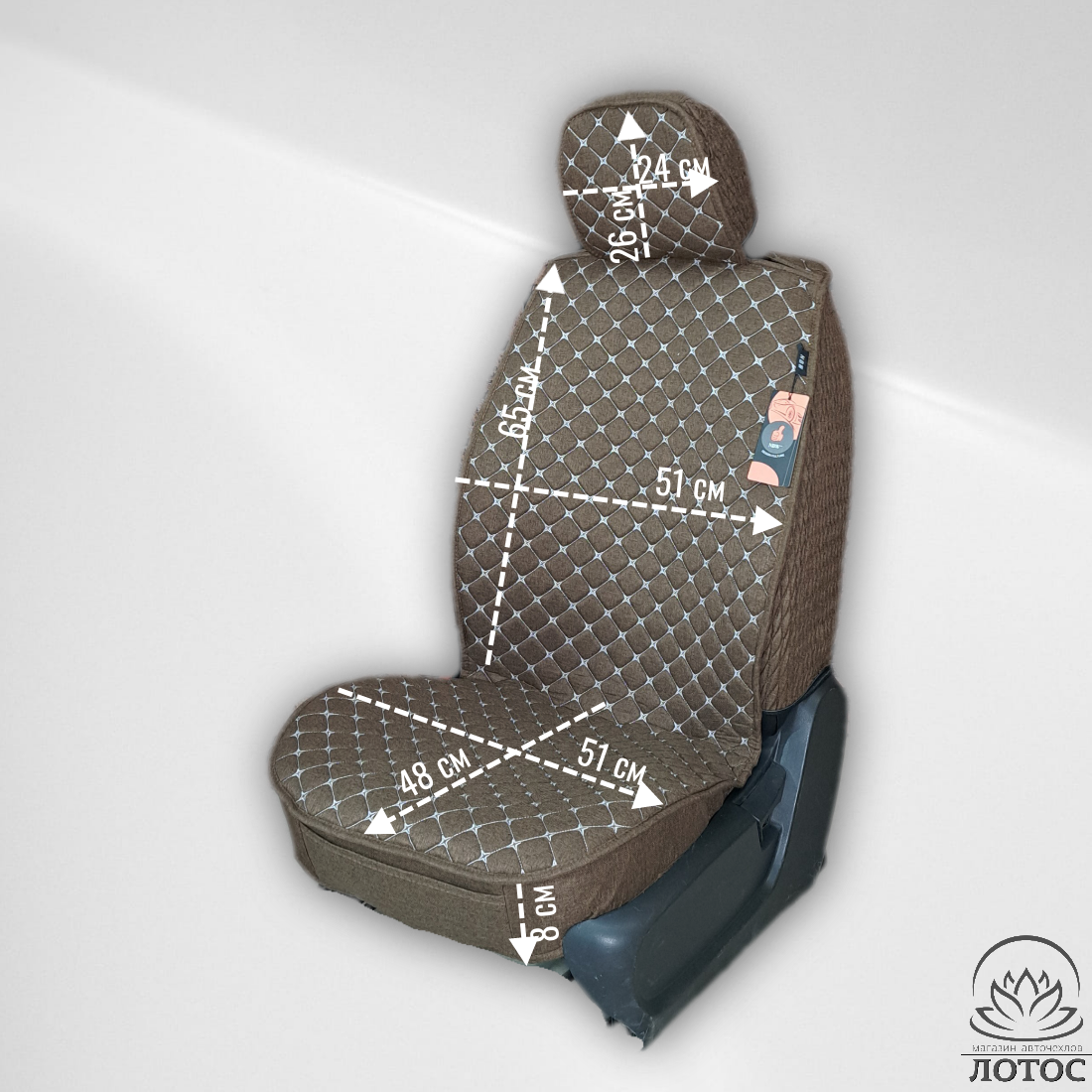 Комплект накидок на сиденье имеют полностью закрытые бока, заднюю спинку и подголовник. Дизайн накидок - классический ромб, идеально впишется в любой салон. Так же чехлы оснащены специальными карманами, где удобно хранить различные мелочи и аксессуары. Они легко монтируются на сиденья и так же просто снимаются, поэтому вы сможете быстро установить их на сиденья вашего автомобиля.