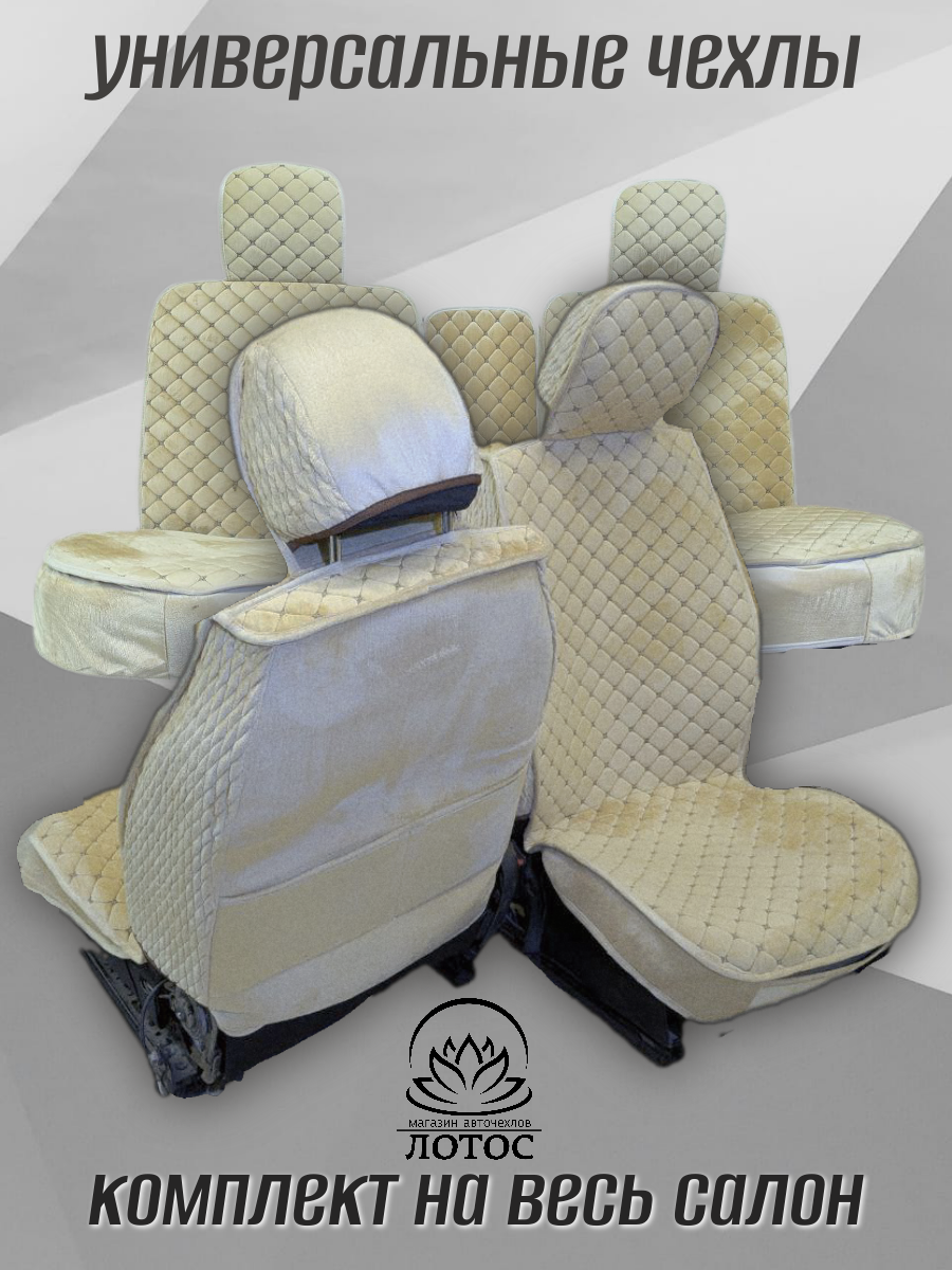 Универсальный чехол на весь салон из велюра в бежевом цвете