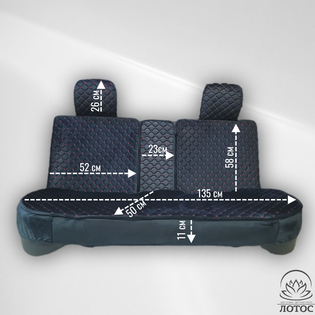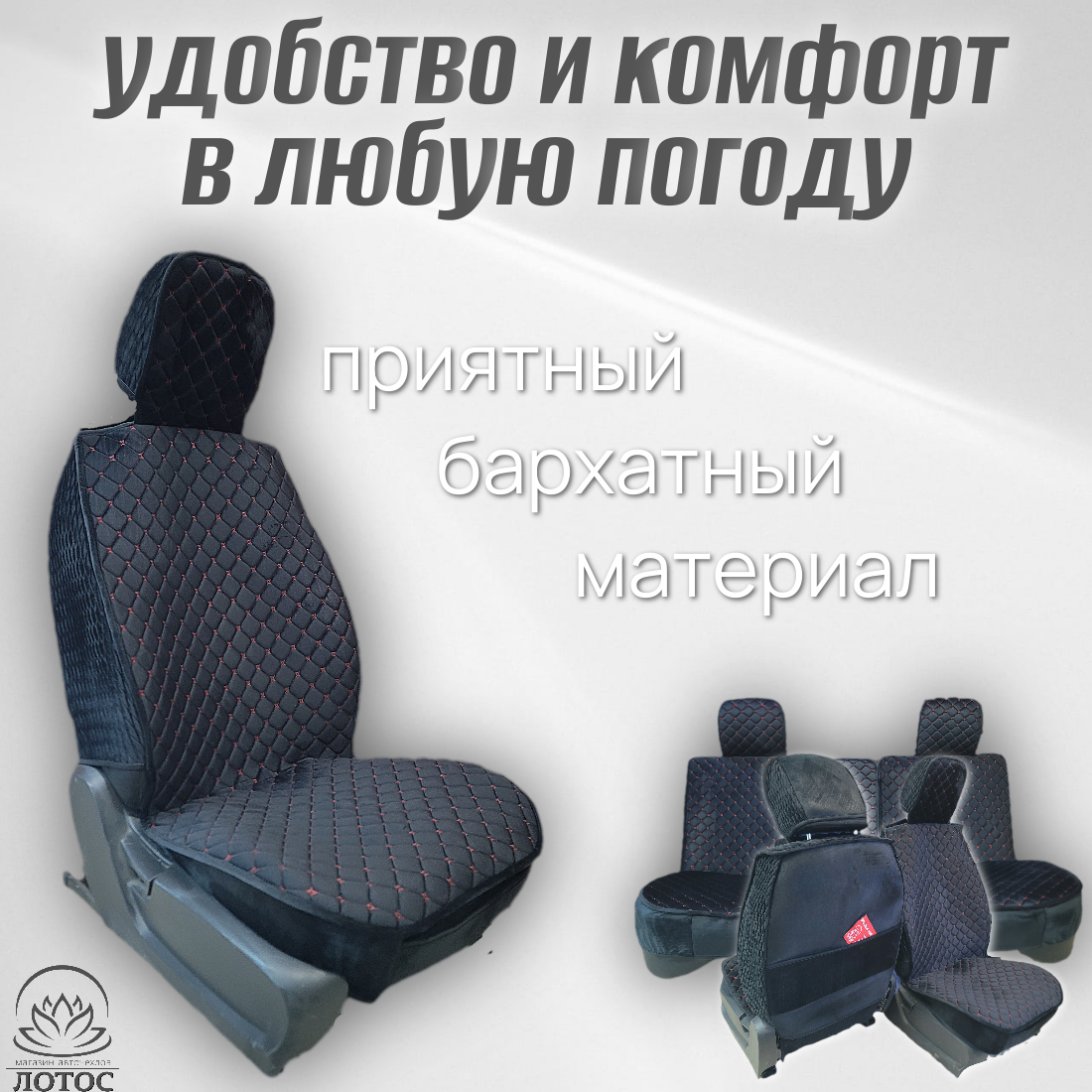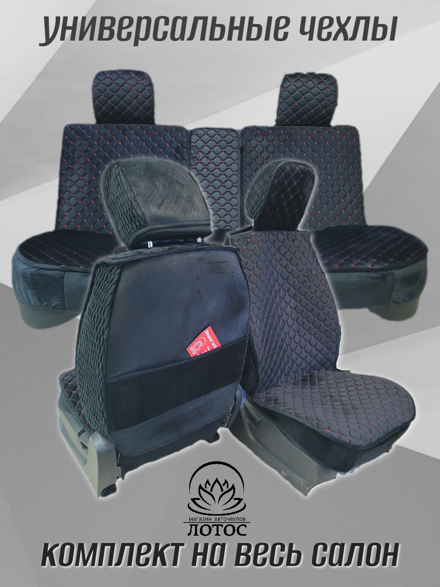 Универсальный чехол на весь салон из велюра в черном цвете с красной нитью
